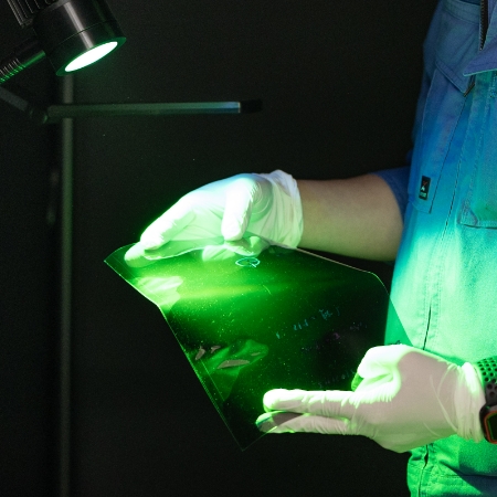 光は様々な方向に振動していますが、偏光板は特定の方向の光だけを通します。偏光板の働きによって不要な光を抑え、液晶ディスプレイでは画面をくっきり鮮やかに映し出し、有機ELディスプレイではパネル内部の反射を防止して深い黒と高い視認性を実現しています。